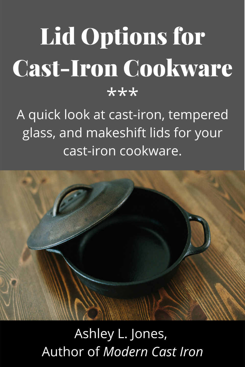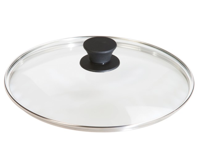 If you’d like to purchase a matching lid, check with the manufacturer of your cast-iron pan or pot. Many of them make matching lids out of tempered glass and cast iron. If the pan is old and the manufacturer is no longer in business, try a lid from a different company. I have a lid for a 10” deep-dish skillet, and I’m able to use it on all my 10” skillets, regardless of the brand. One exception may be the thinner cast iron that some artisanal companies are now making. I would imagine the thinner side walls would require a slightly different pattern for their lids, so they may not fit well on other brands.