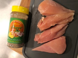 There are a million ways to make chicken, so I figured, “Why not mojo chicken?” I sprinkled some Mojo seasoning on chicken breast cutlets and sautéed them in a cast-iron skillet for a few minutes. Paired with rice and veggies, you just can’t go wrong with this!
