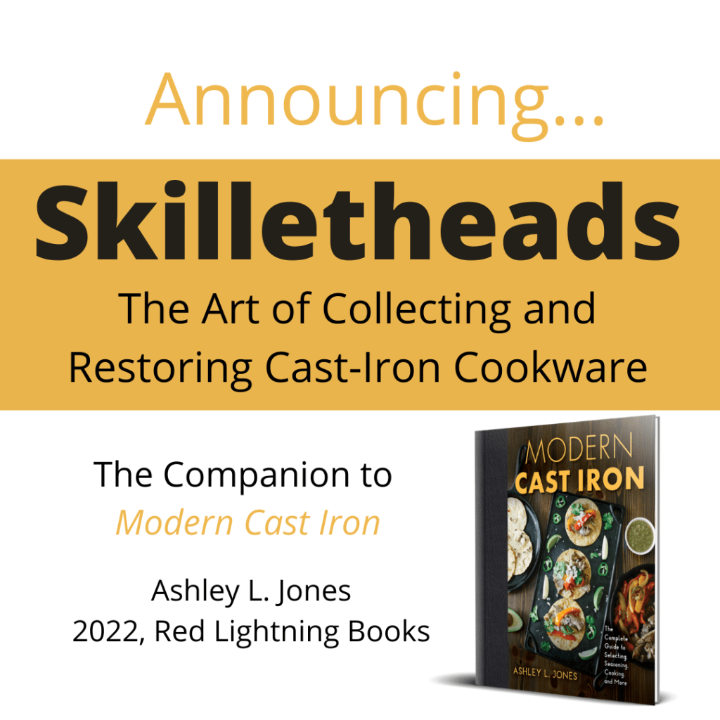 I’m so excited to announce that I just signed a contract for the companion book to Modern Cast Iron! The working title is Skilletheads: The Art of Collecting and Restoring Cast-Iron Cookware. This book will pick up where Modern Cast Iron left off, providing all the information you need to restore and collect cast iron like a pro. And if that’s too much, you can reach out to the Skilletheads listed in the book to have them restore your cast iron for you or to purchase a professionally-restored piece. Skilletheads will include details on all the major cast-iron manufacturers in the US and tons of recipes to keep your pans busy.